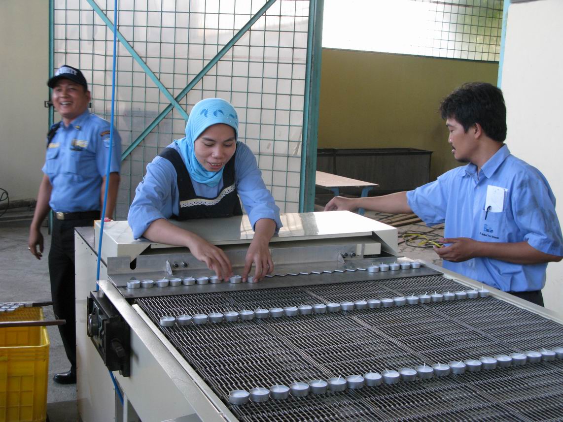 售后人員在印尼工廠指導工人使用灌裝線